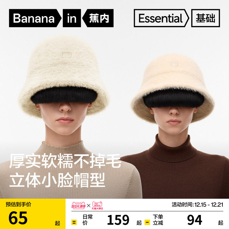蕉内502GO女士仿兔绒帽防风保暖毛绒可爱渔夫帽秋冬新款盆帽帽子
