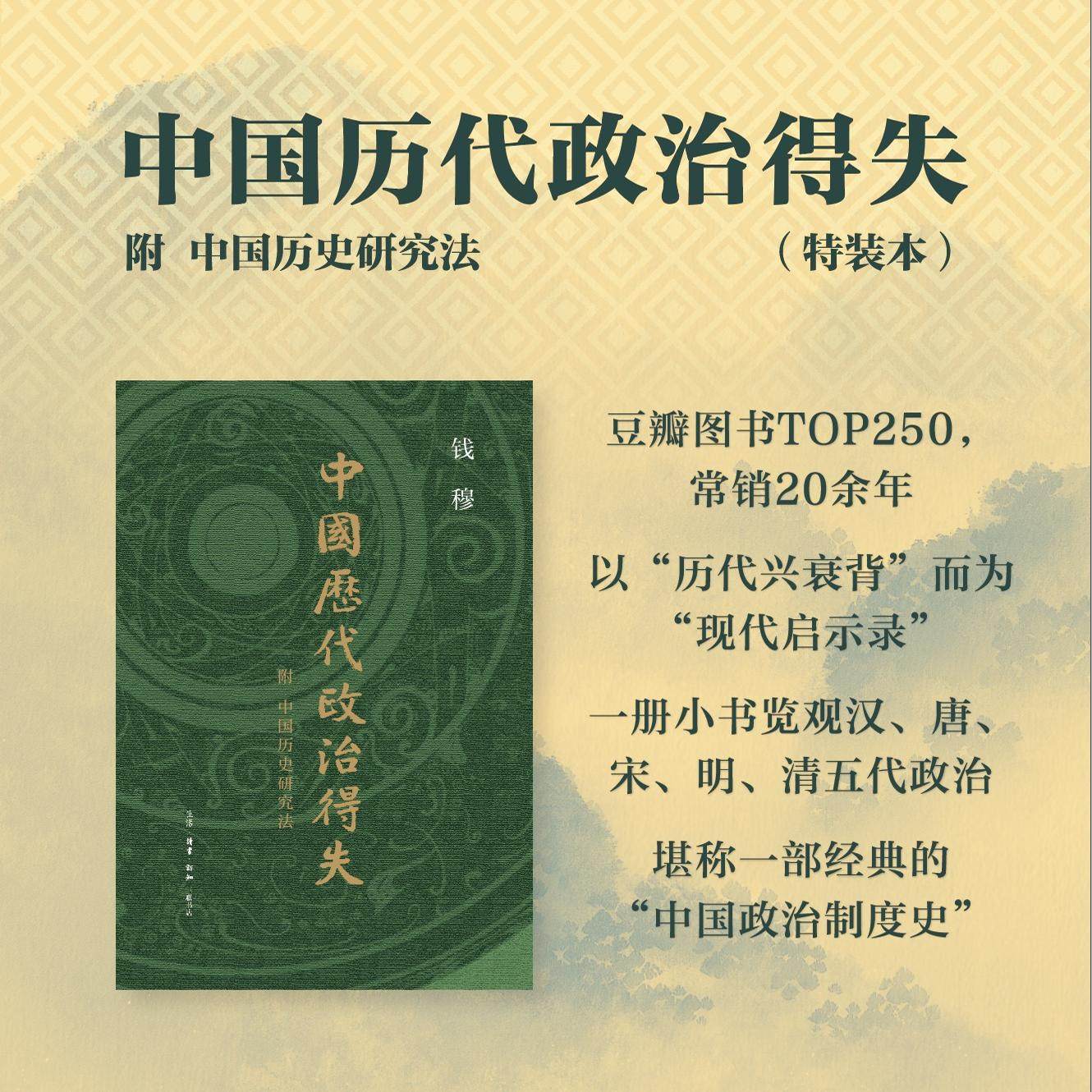 推荐理由:西西弗书店 中国历代政治得失布面精装刷边版 钱穆 附中国历史研究法 以历代兴衰背而为现代启示录 览观汉唐宋明清五代政治