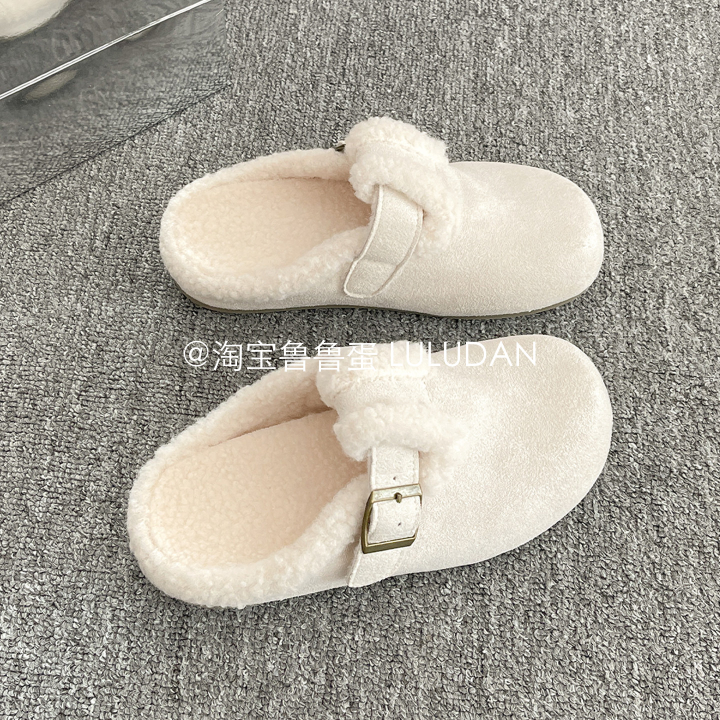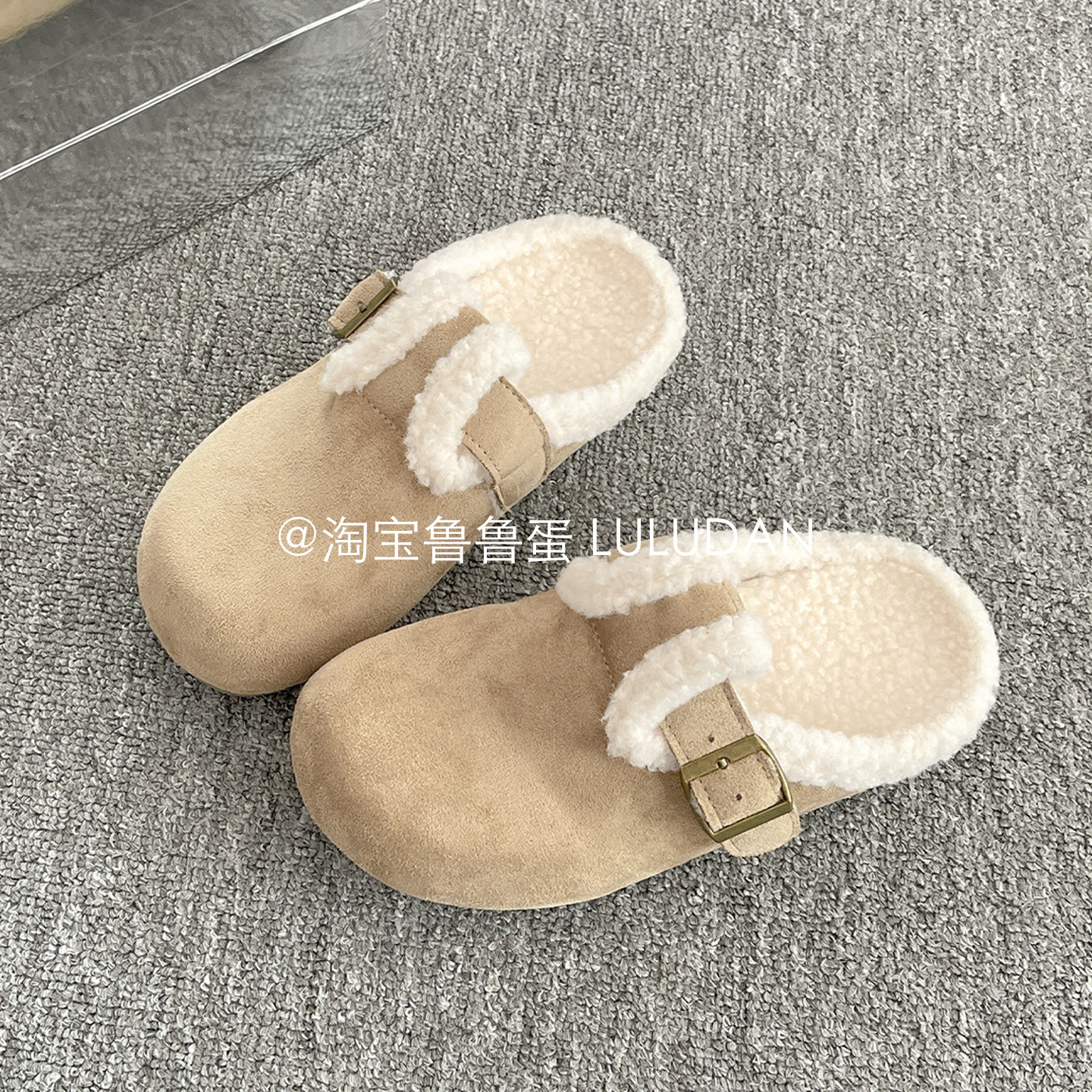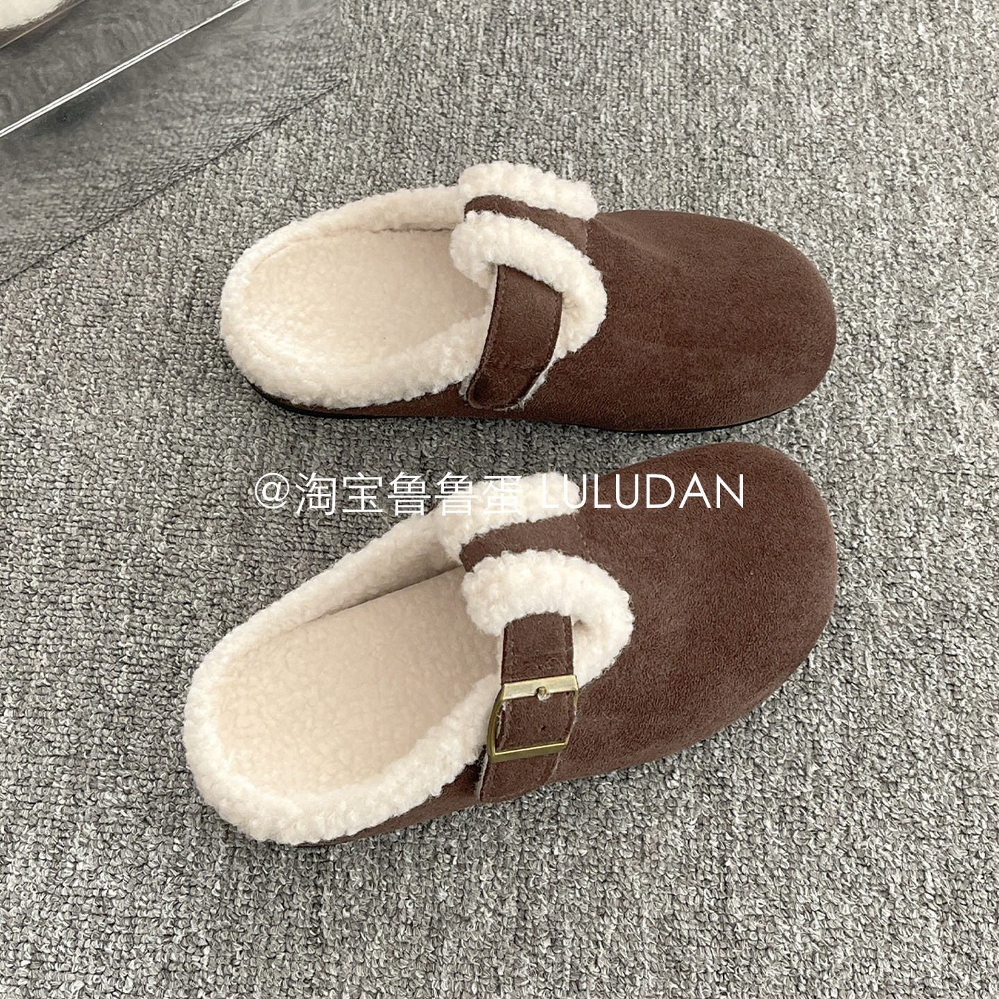 鲁鲁蛋保暖加绒厚底穆勒鞋半拖鞋女秋冬外穿一脚蹬女鞋毛毛勃肯鞋