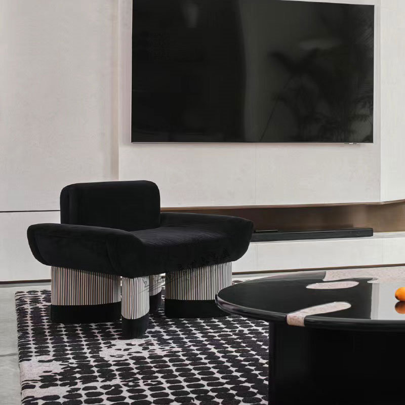 奶油风创意现代简约设计感微笑布艺单人沙发客厅酒店样板房休闲椅