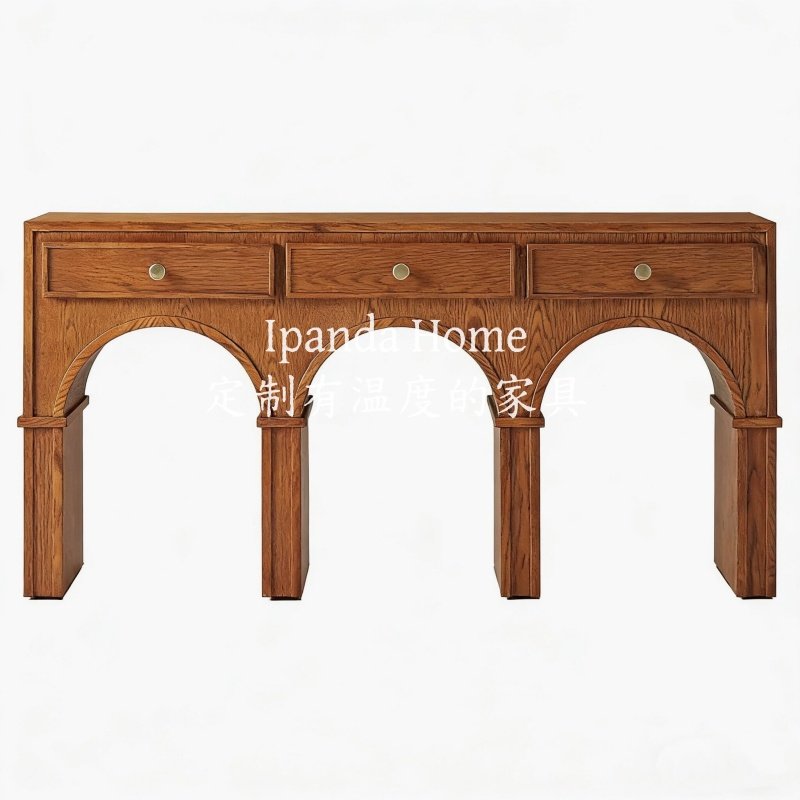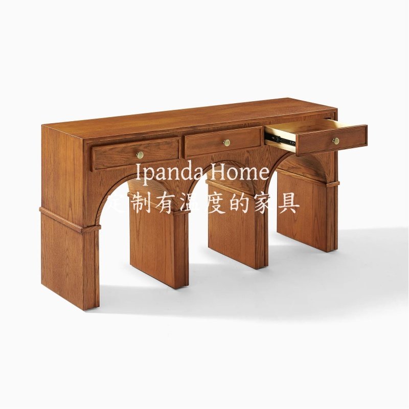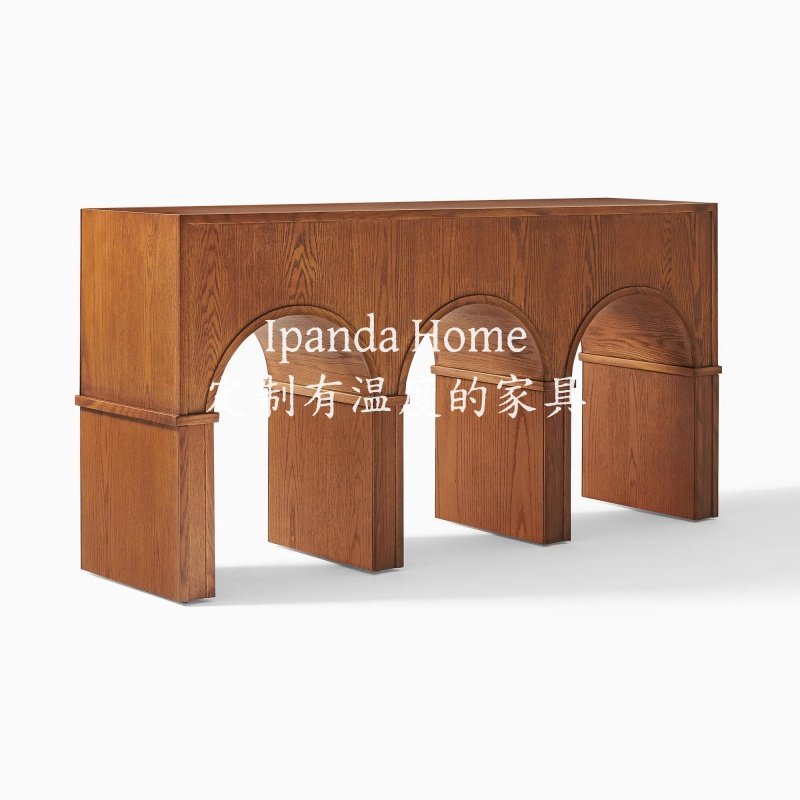 中古风实木胡桃木色玄关台客厅拱形条案轻奢高级感设计师入户桌