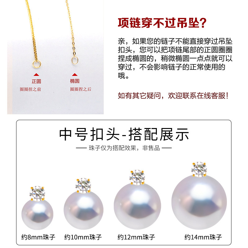 推荐理由:18k金扣头王妃款au750黄金珍珠吊坠空托配件项链镶嵌戴妃款半成品