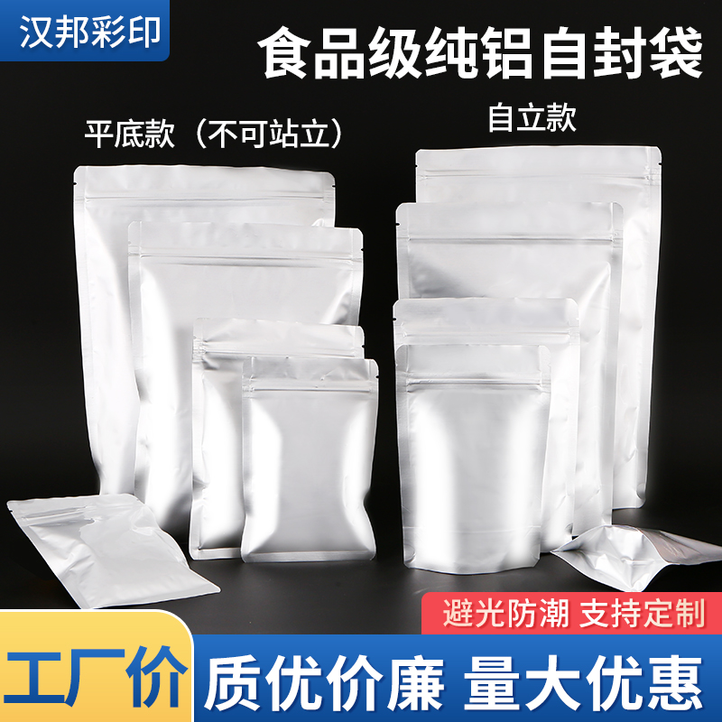 纯铝箔自立自封袋食品包装袋茶叶锡纸袋平底粉末干果保鲜袋猫狗粮