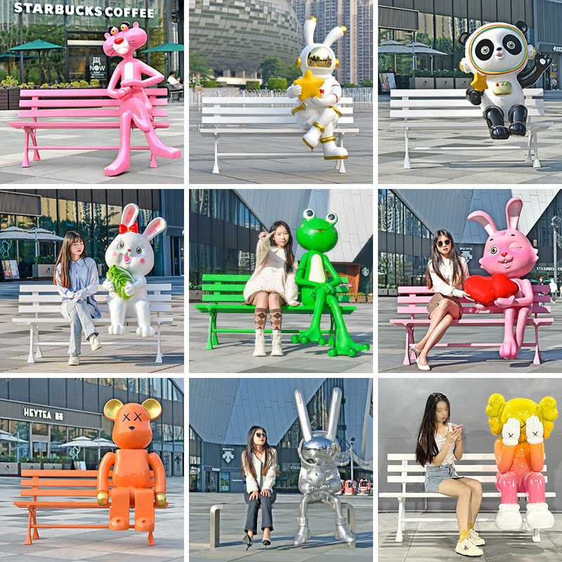 户外休闲卡通动物公园椅商场小区幼儿园网红店玻璃钢座椅雕塑摆件