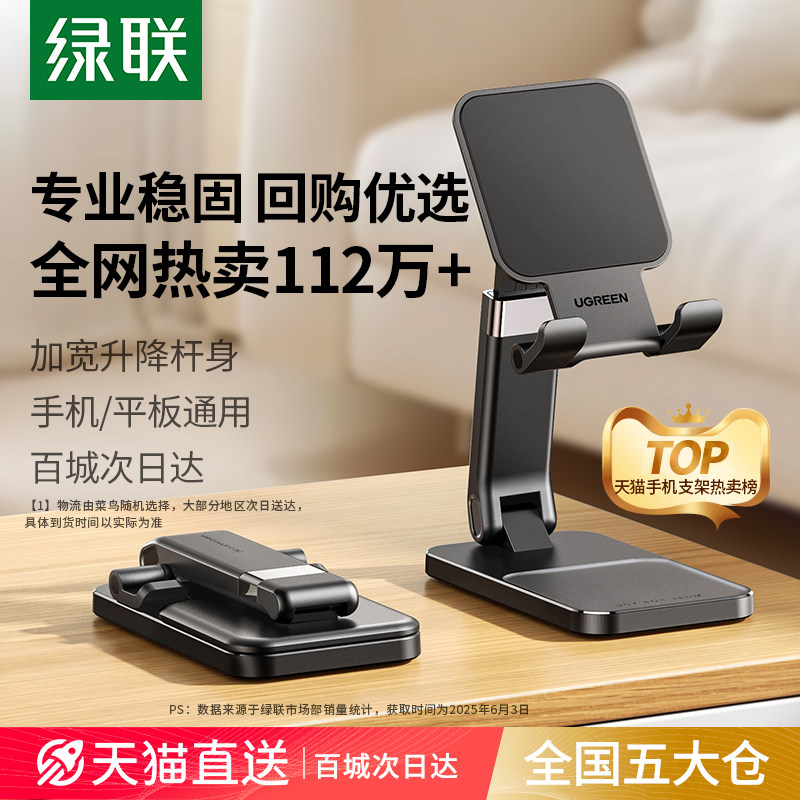 绿联手机支架桌面2025新款适用ipad平板支撑架金属升降调节稳固直播专用办公室床头多功能通用手机架支架旋转