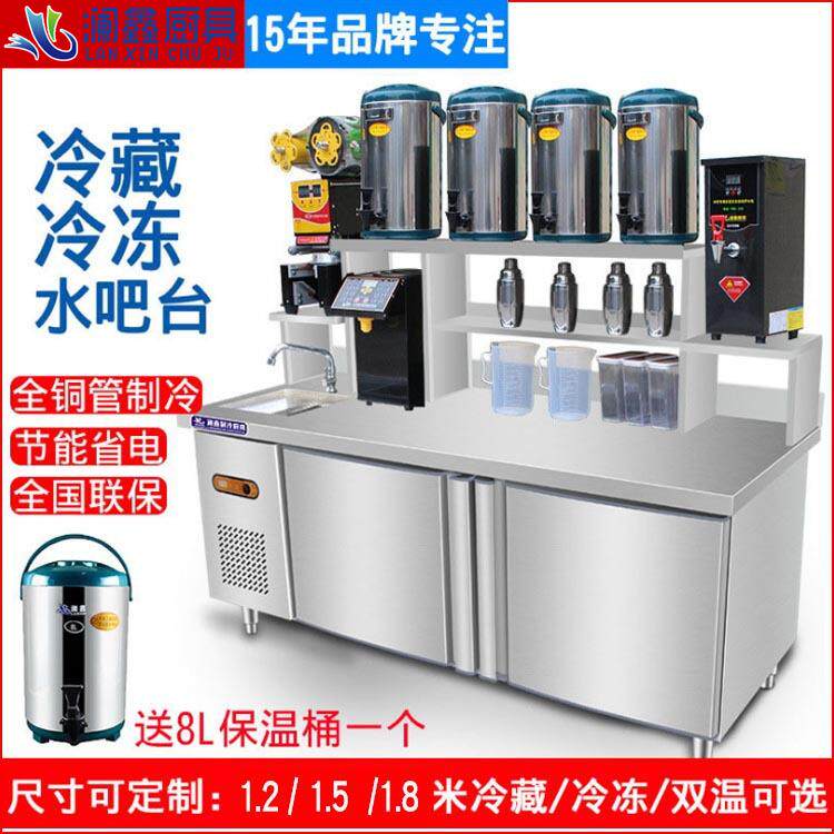 澜鑫冷藏工作台商用益禾堂奶茶店不锈钢水吧台厨房保鲜工作台冰柜