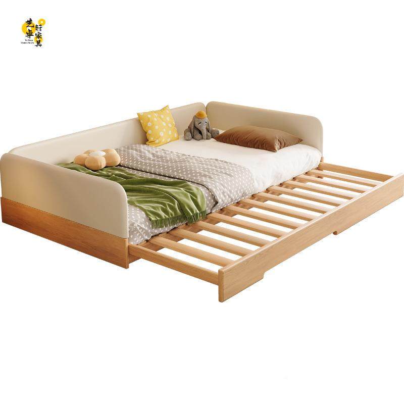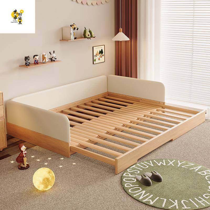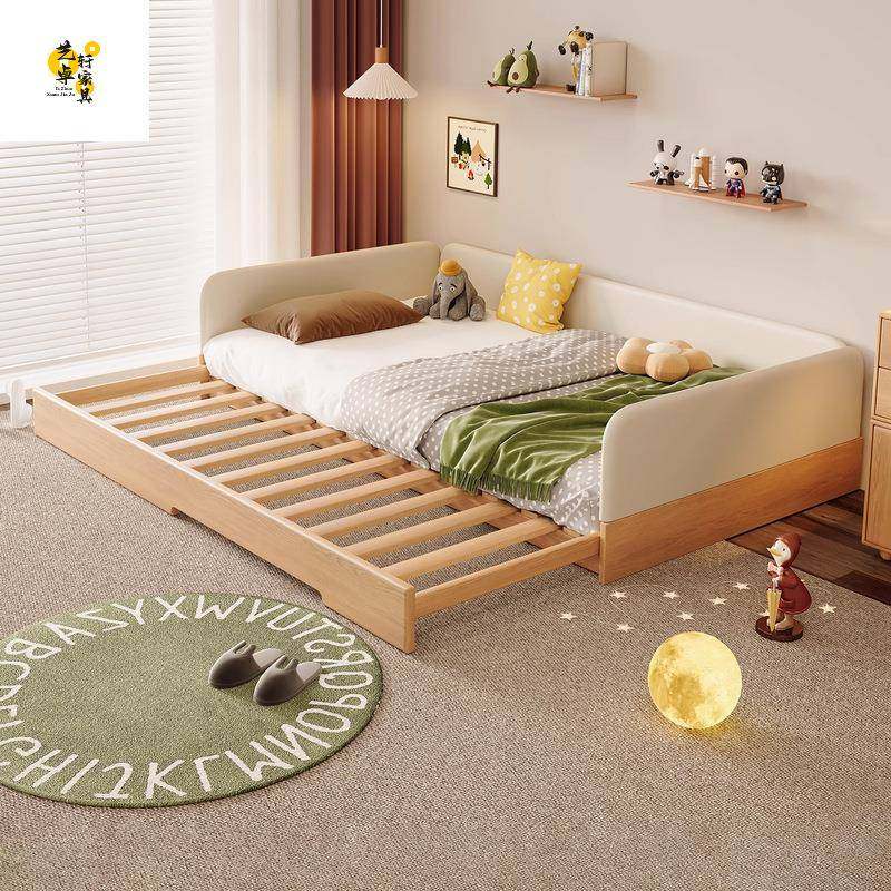 蒙氏儿童S34-1地台床护带栏抽拉实木拼接可伸缩床地板床透床气