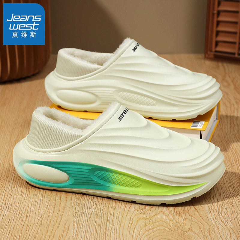 HH真维斯拖鞋男2025新款冬季加绒保暖一脚蹬男鞋厚底防滑男士棉拖