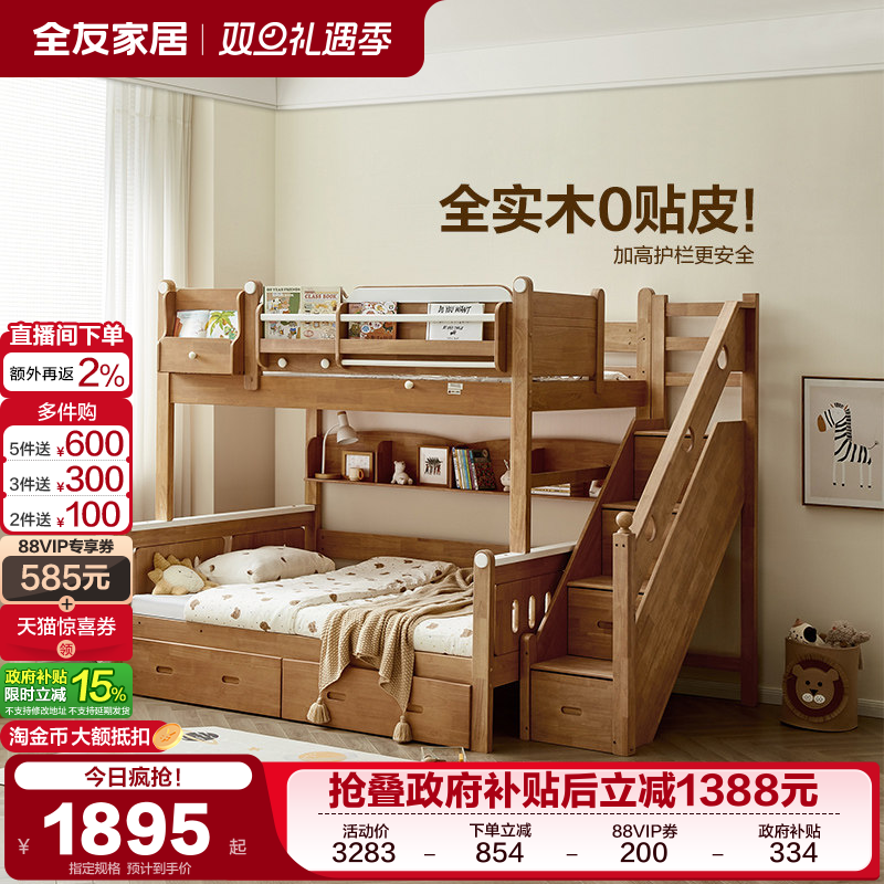 推荐理由:全友家居新款儿童上下铺双层床实木子母床互不干扰姐弟床高低床