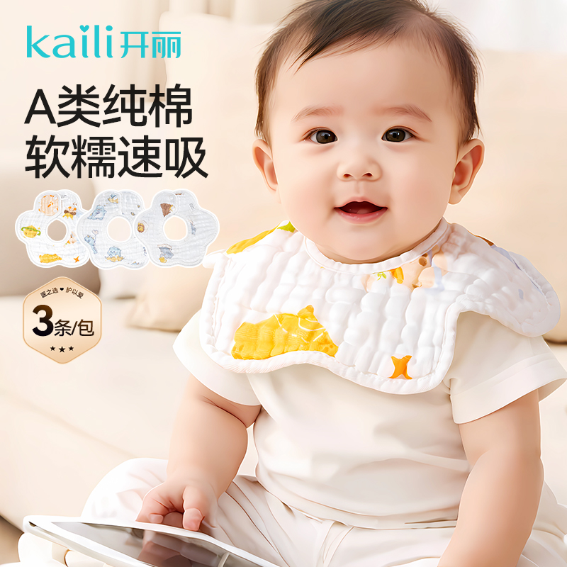 开丽新生儿花瓣围嘴纯棉透气可旋转宝宝吃饭吃奶口水巾围兜 A 类