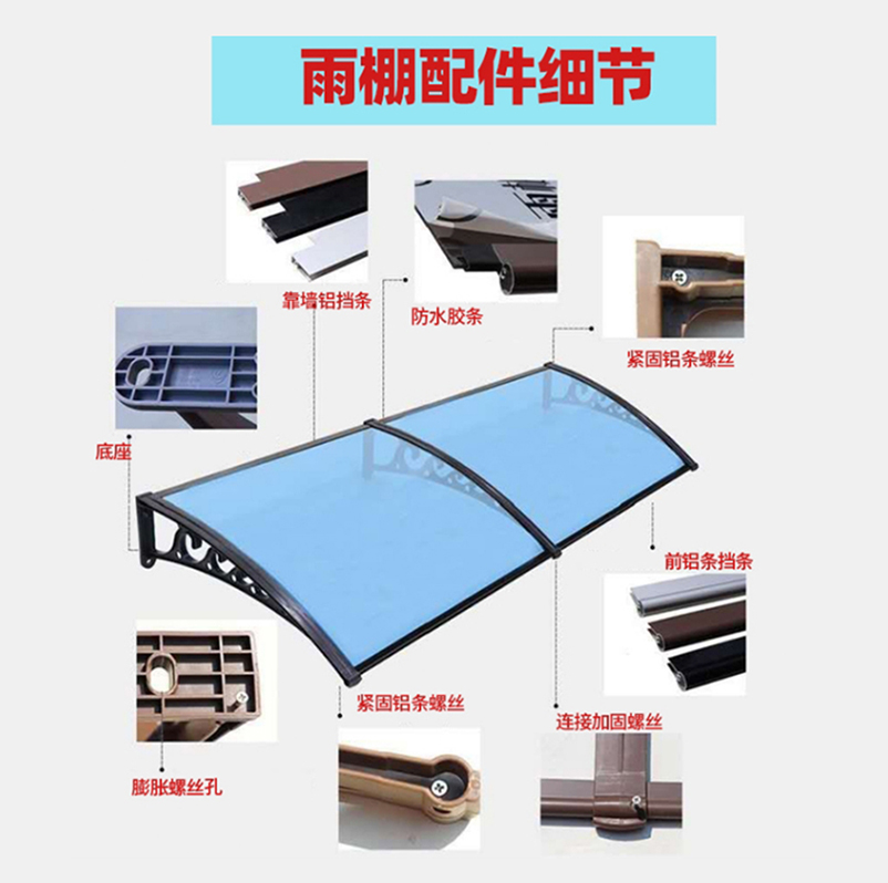 耐力板雨棚家用窗户庭院门头防雨挡板屋檐阳台防飘雨户外遮阳雨搭