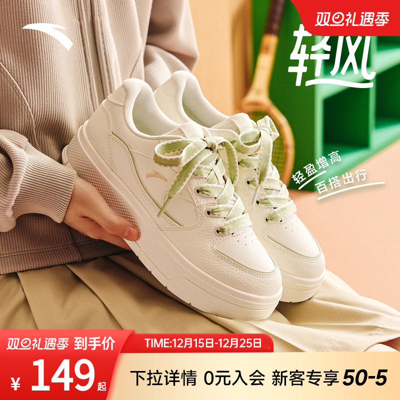 安踏轻风板鞋女鞋小白鞋女款2025新款冬季厚底休闲鞋皮面运动鞋子