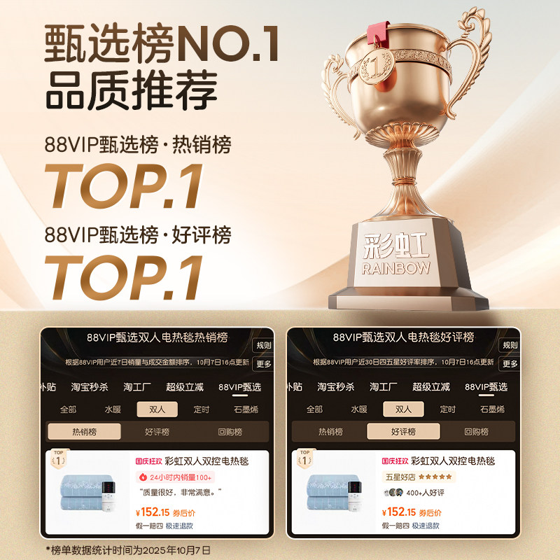彩虹电热毯双人双控电褥子单人智能温控暖家用纯棉水暖官方旗舰店