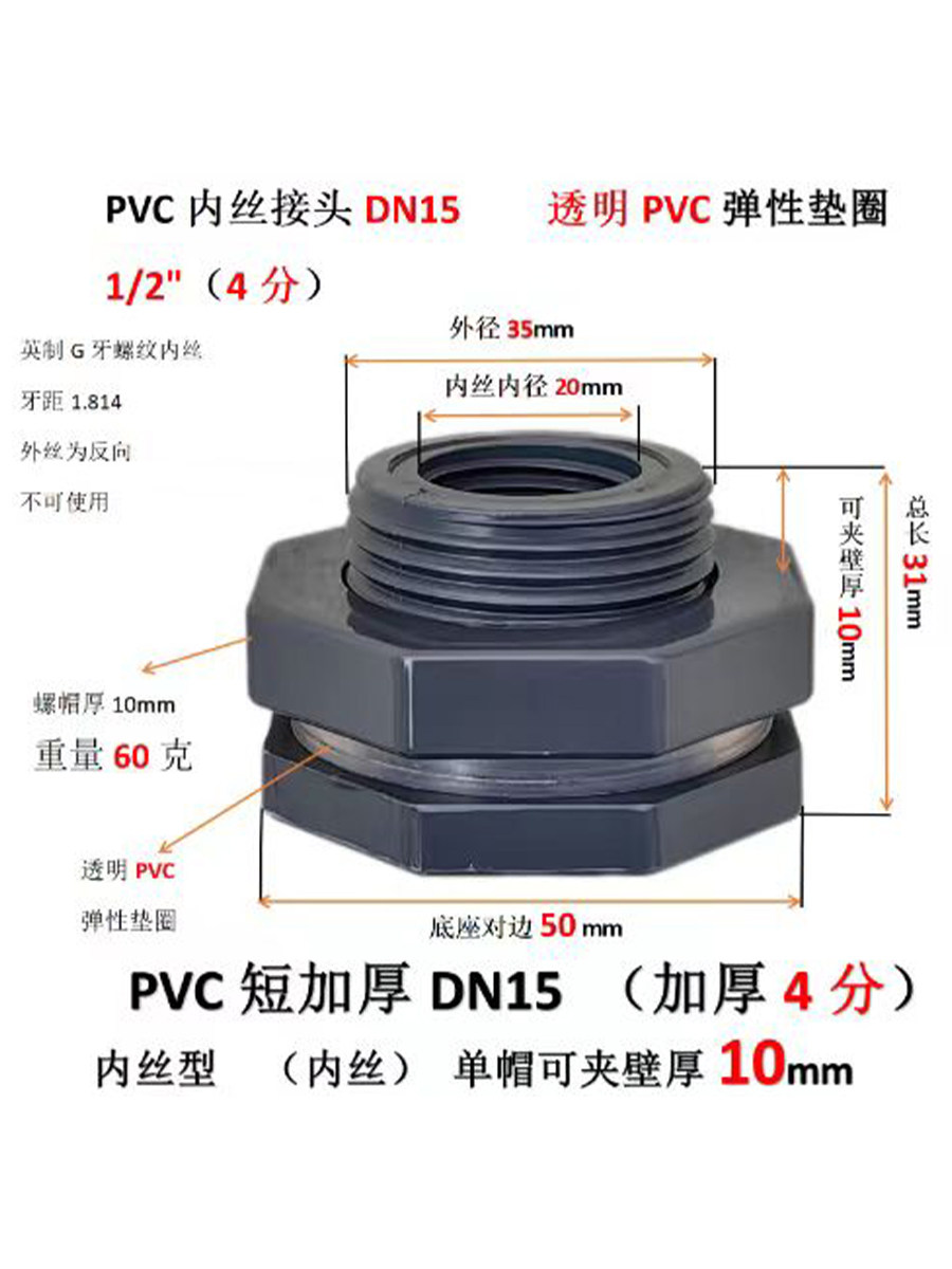 推荐理由:家用塑料法兰接头 4分加厚内丝接头带堵头 整套水桶水塔鱼缸接口