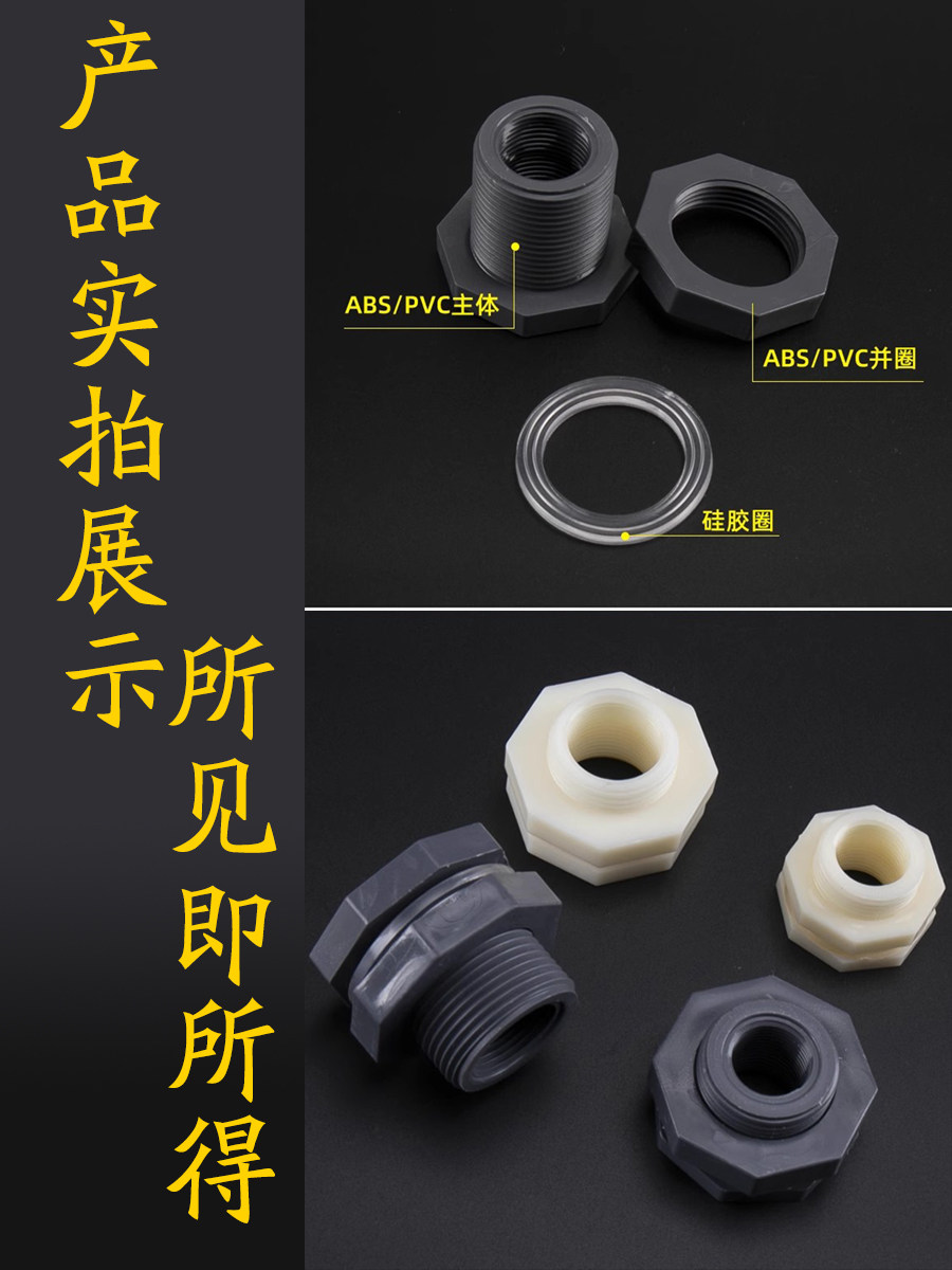 家用塑料法兰接头 4分加厚内丝接头带堵头 整套水桶水塔鱼缸接口