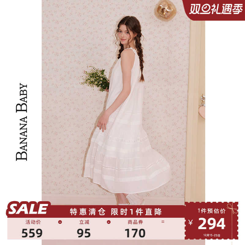 推荐理由:BANANA BABY2025年新款气质法式度假风长裙女抽绳宽松连衣裙