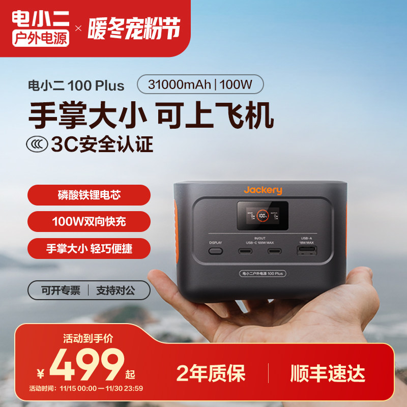 电小二移动电源100Plus小巧便携太阳能快充大容量备用蓄电池露营