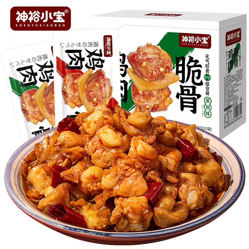 推荐理由:神裕小宝鸡肉脆骨黑椒香辣味掌中宝卤味肉制品开袋即食鸡胸肉零食