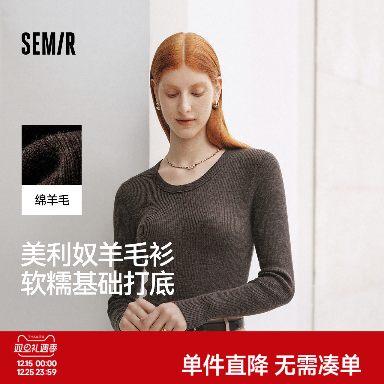 森柔|森马针织衫女冬鹅蛋领纯色紧身上衣2025新款黑色打底羊毛衫