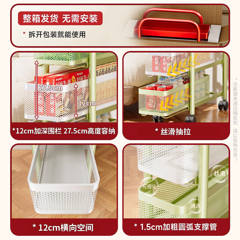 多巴胺夹缝零食小推车置物架移动落地家用客厅厨房缝隙抽拉收纳柜