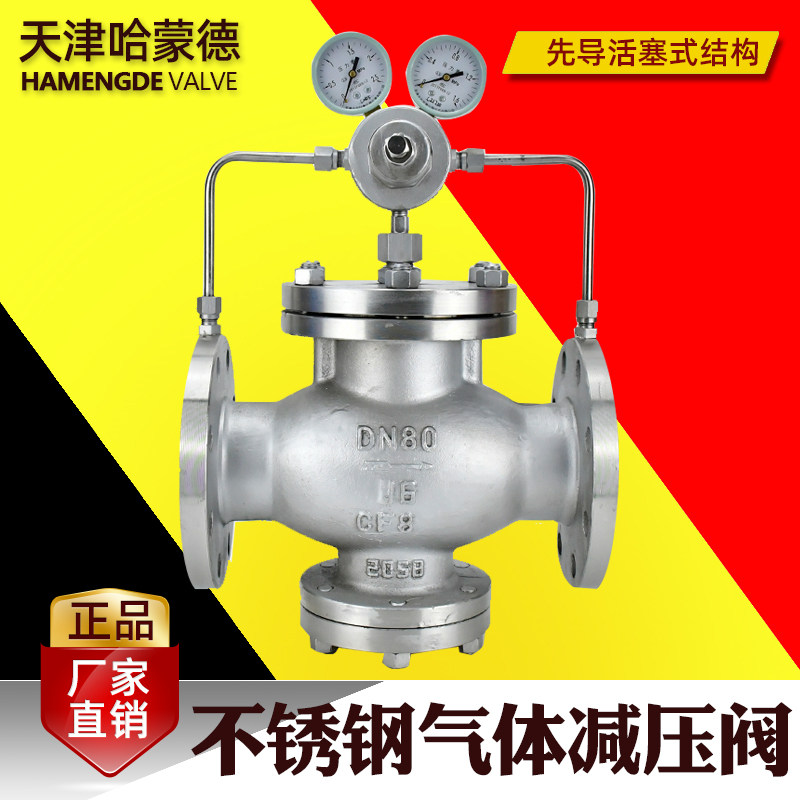 天津哈蒙德不锈钢法兰减压阀304气体先导活塞式调压阀氮天然空气