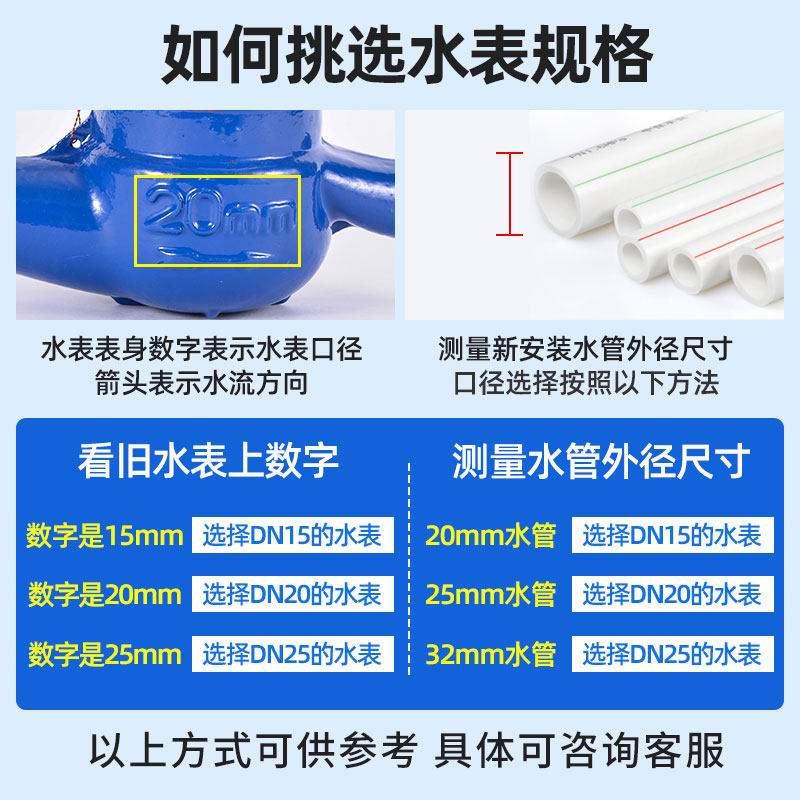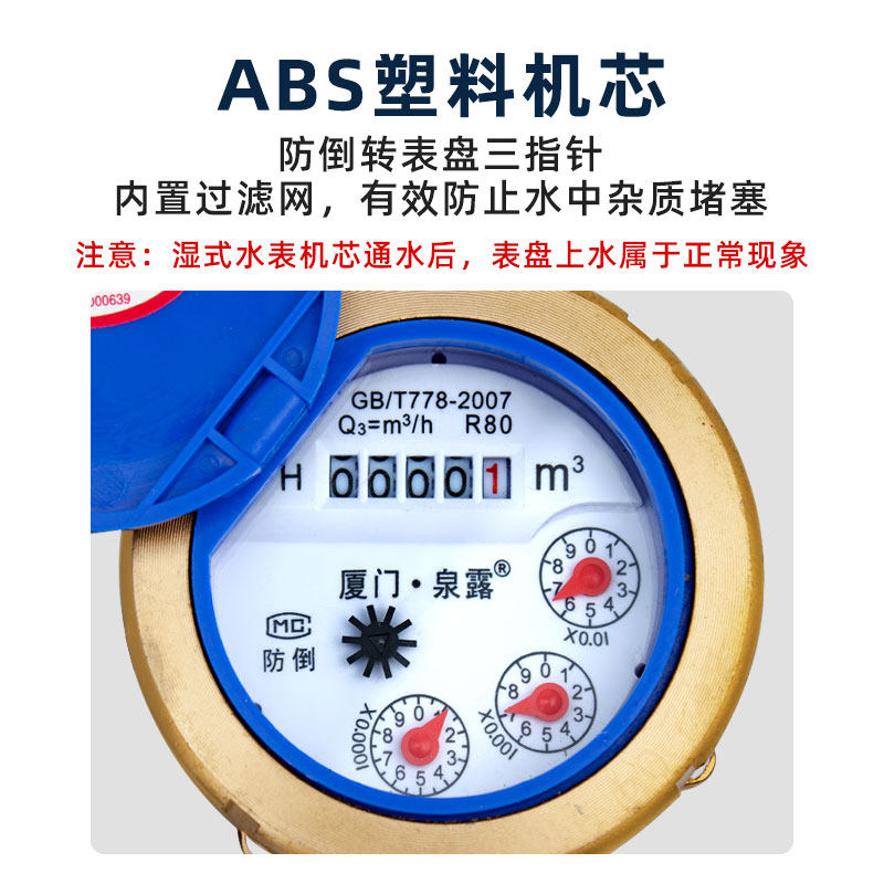 推荐理由:水表家用自来水4分6分出租屋专用冷水表 旋翼式湿式水表DN15/DN20