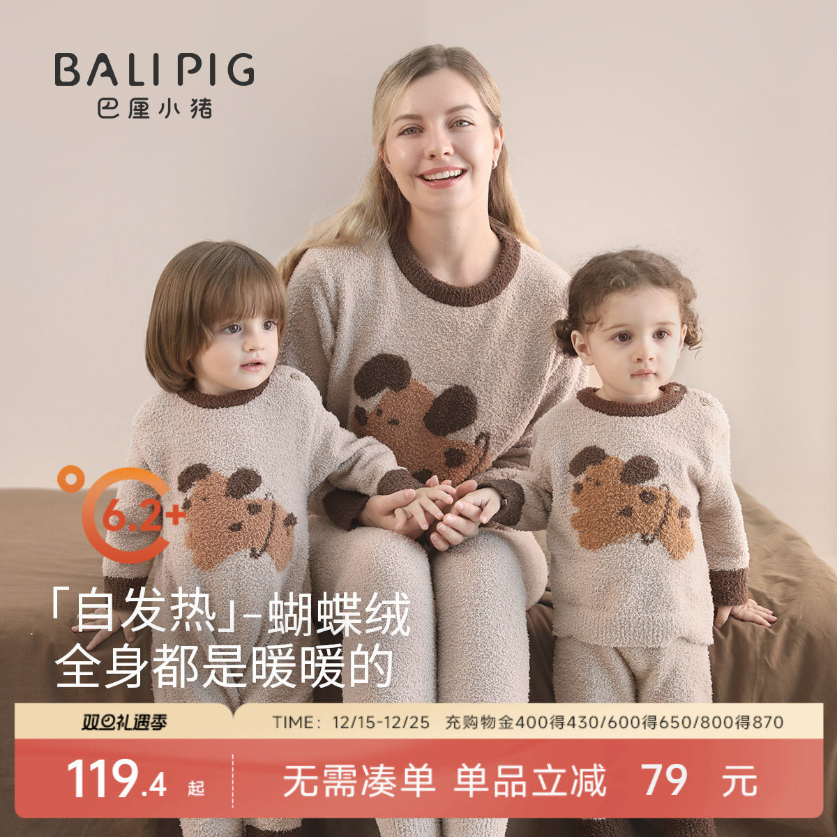 亲子装睡衣套装宝宝秋冬加绒加厚保暖儿童毛衣针织连体婴儿家居服
