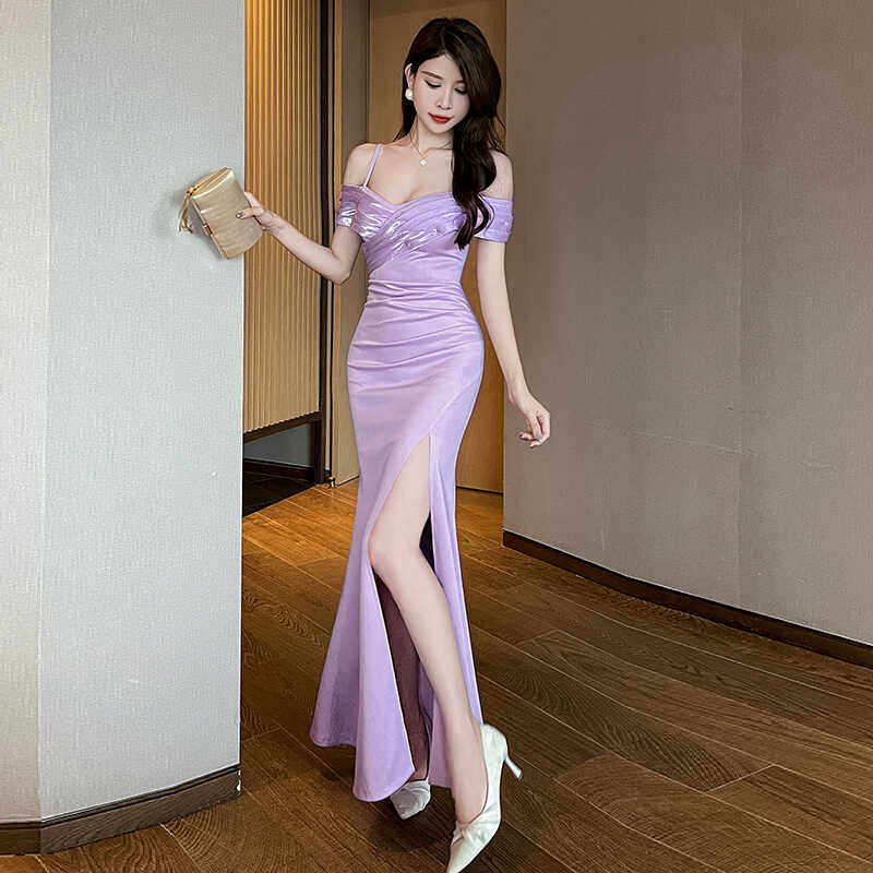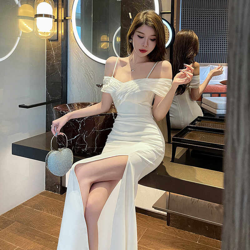 推荐理由:车模一字肩晚装气质女K歌沐足会所高档工衣修身开叉包臀礼服长裙