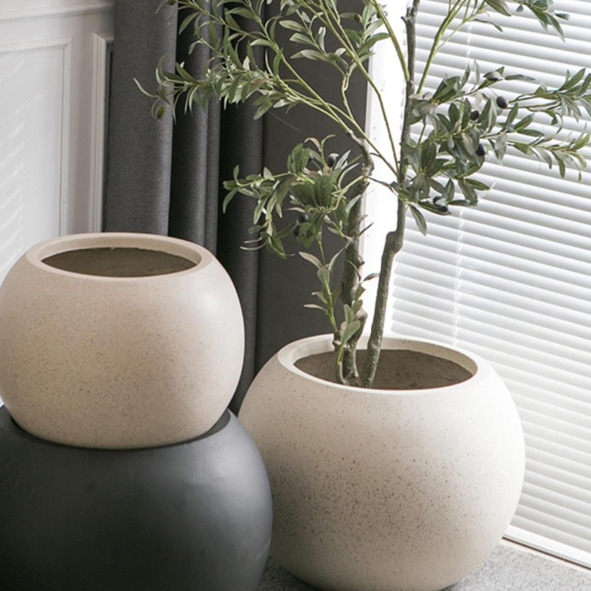 北欧镁泥落地大花盆极简圆球型软装特大花器客厅民宿商场别墅直销