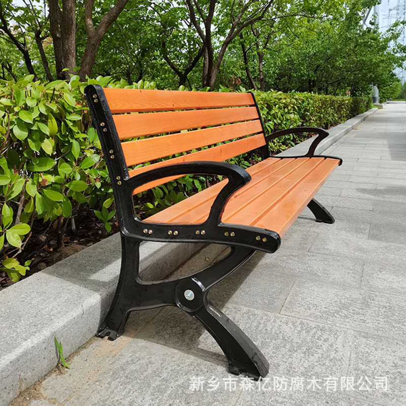 户外公园长椅子靠背椅室外小区广场防腐木座椅铸铁实木长条椅商用