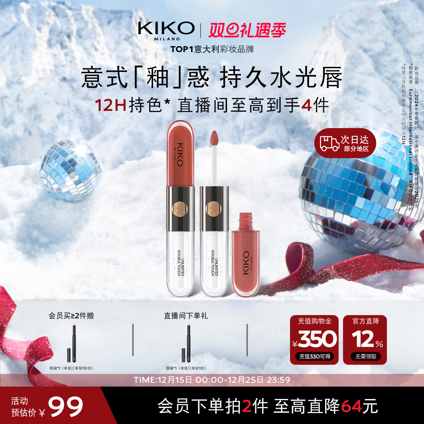【立即抢购】意大利KIKO双头唇釉镜面水光唇蜜不沾杯口红正品
