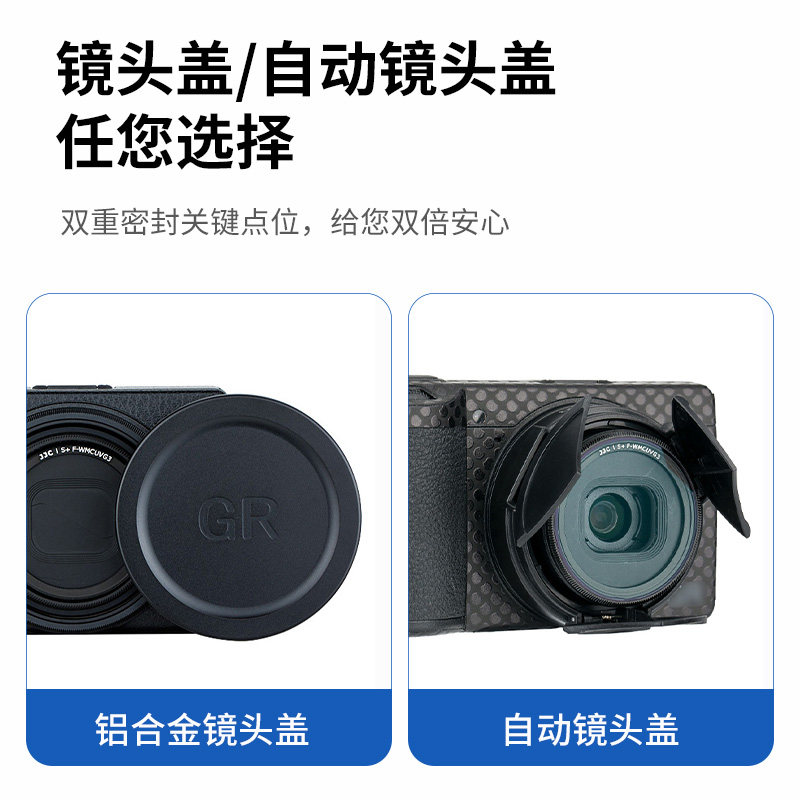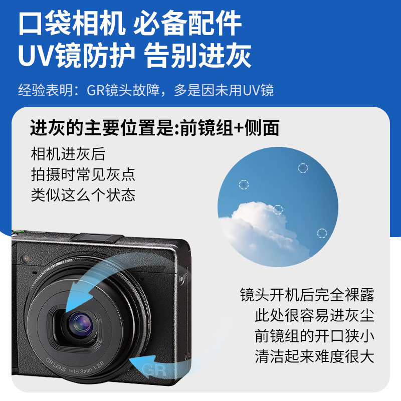 JJC 适用理光GR4滤镜GR3 UV镜 GRIV GR3X GR2 GRIIIX GRIII HDF 镜头保护镜金属盖子防尘配件自动镜头盖