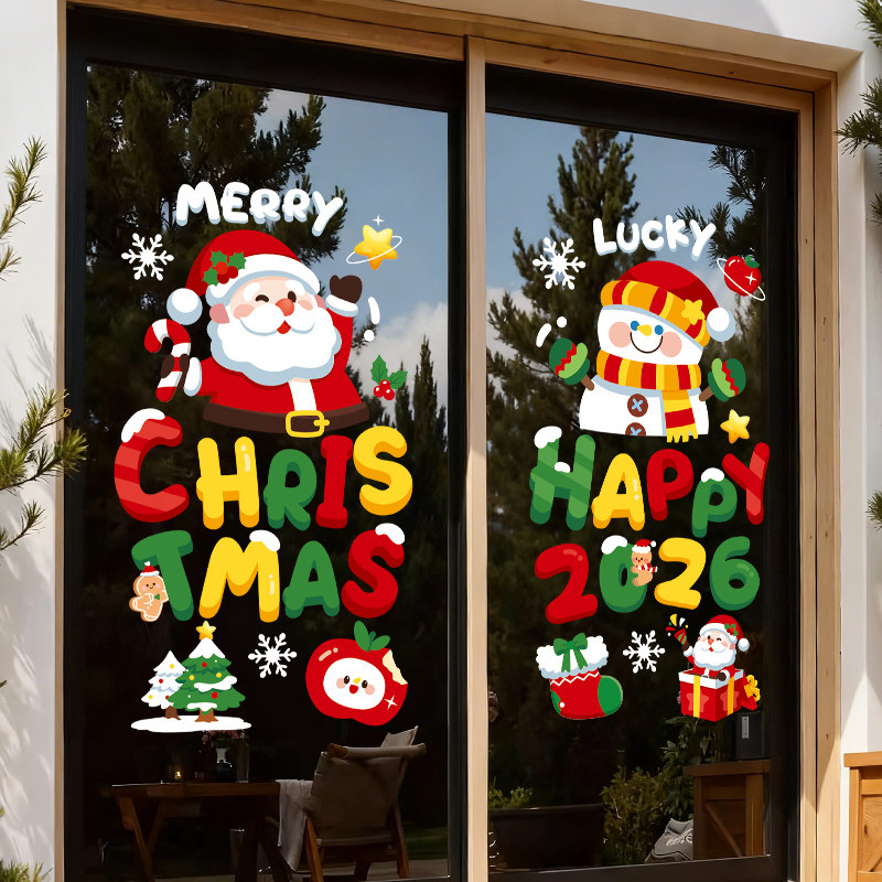 圣诞节装饰品静电玻璃门贴纸2026圣诞老人橱窗贴店铺场景布置挂件
