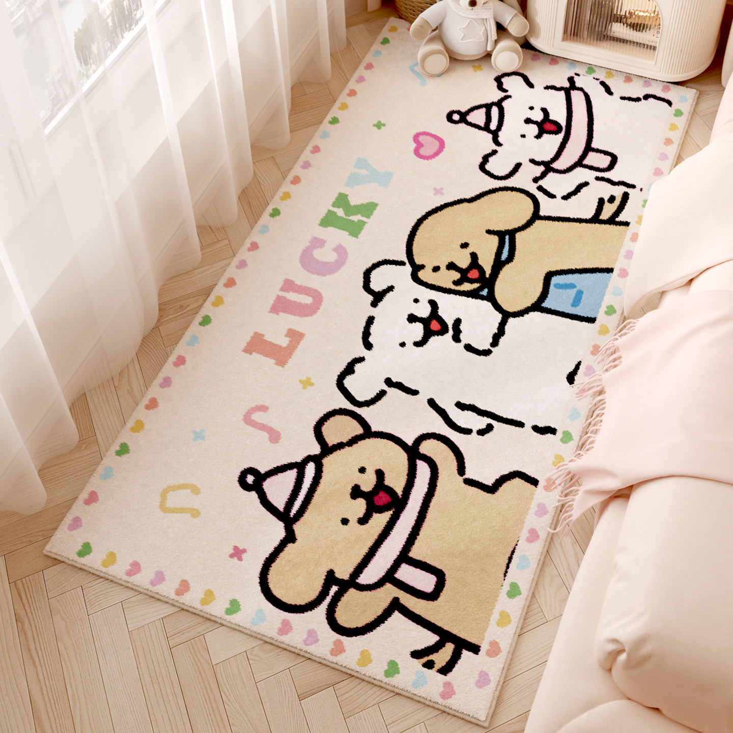 地毯女孩卧室ins风可爱粉色卡通小狗可擦毛绒长条儿童房床边地垫