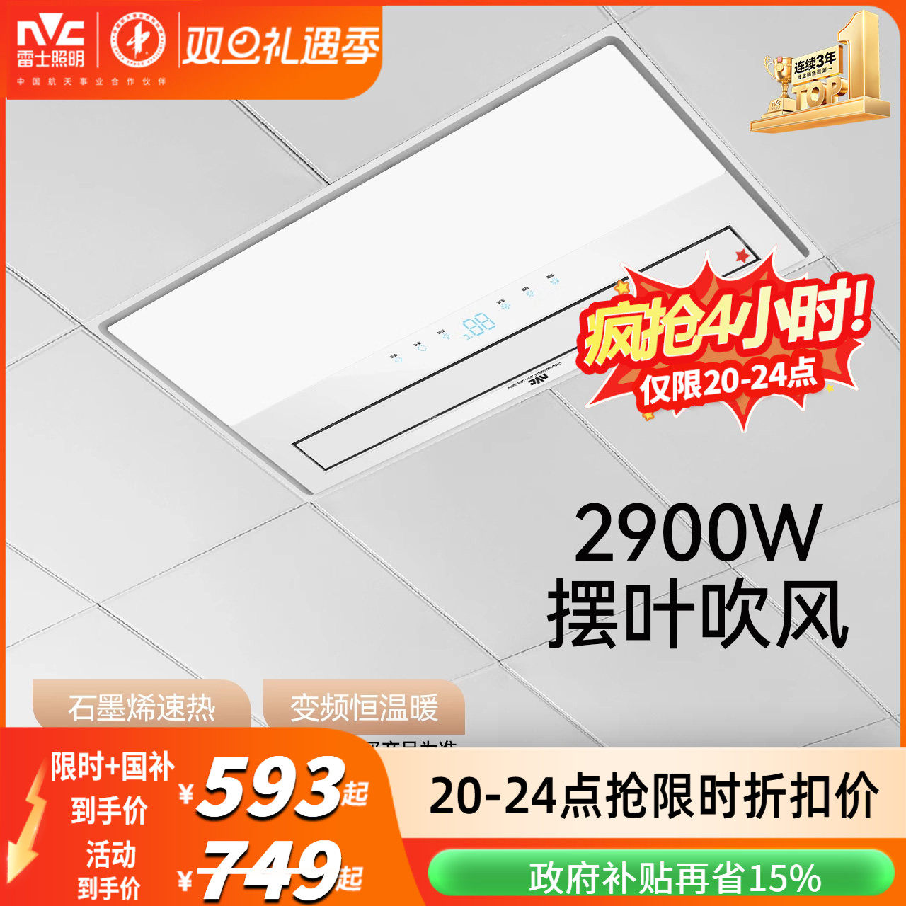 雷士照明集成吊顶嵌入式石墨烯浴霸风暖照明排气扇一体智能暖风机