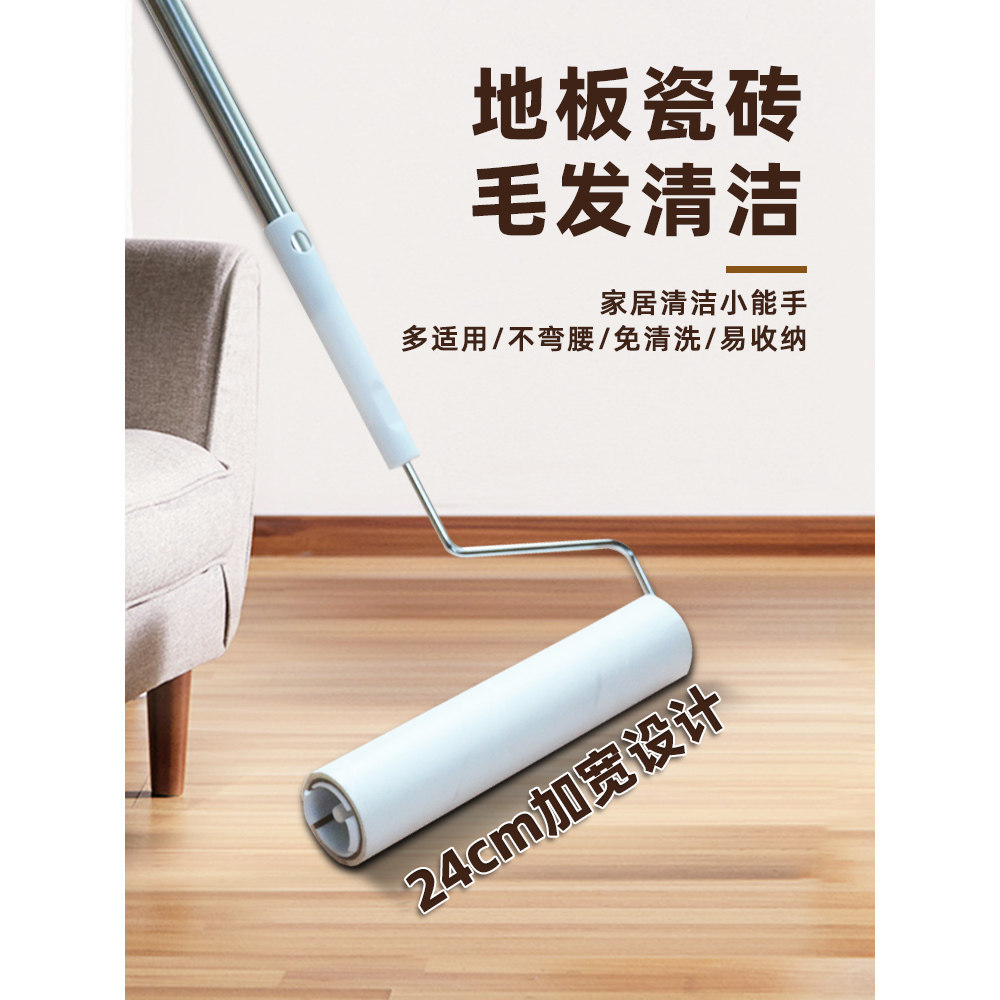 地板粘毛纸24厘米粘毛滚筒家用粘毛器加长杆宠物清洁粘尘纸替换纸