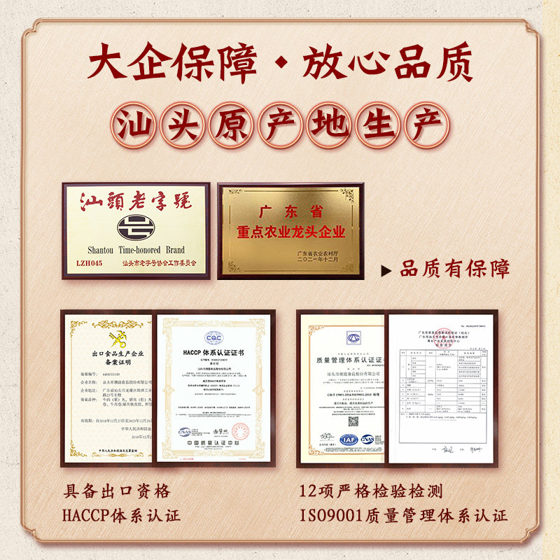 推荐理由:天猫认证 汕头农业龙头企业 五星正品旗舰店