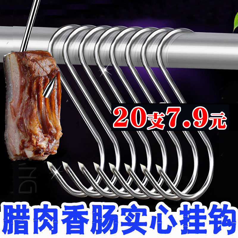 推荐理由:加粗实心腊肉钩子304不锈钢尖头S钩子挂钩鱼香肠烤鸭烧鸡猪肉尖钩