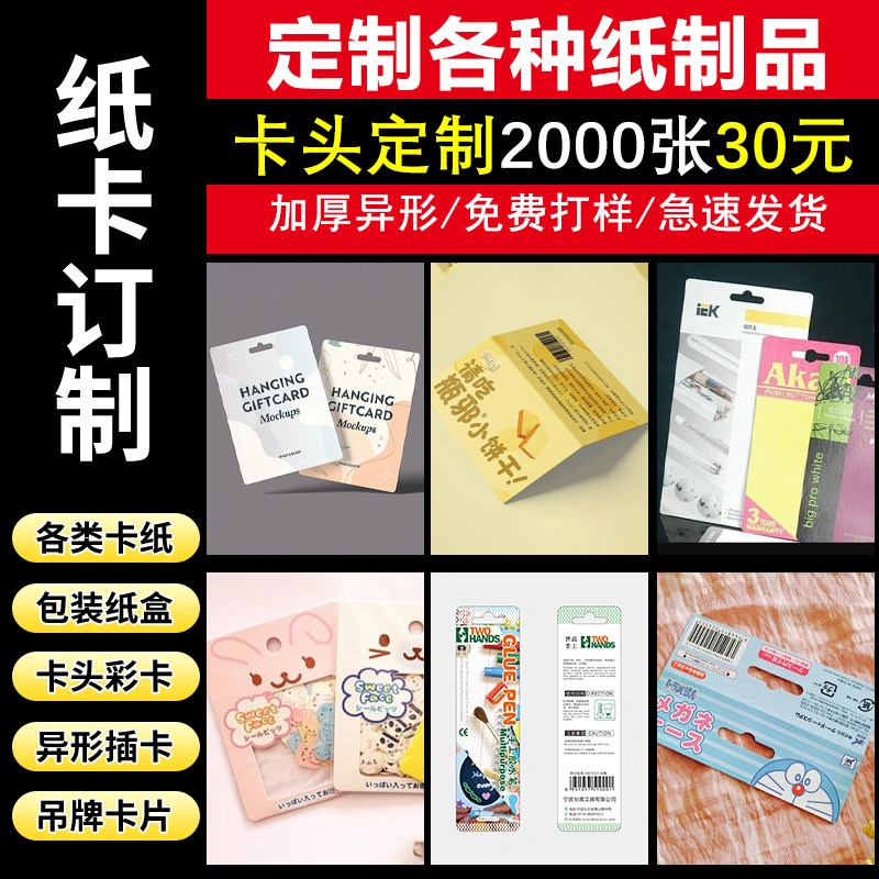 卡头纸卡定制纸卡印刷厂彩色卡纸包装定制吊牌卡纸定做吸塑纸卡