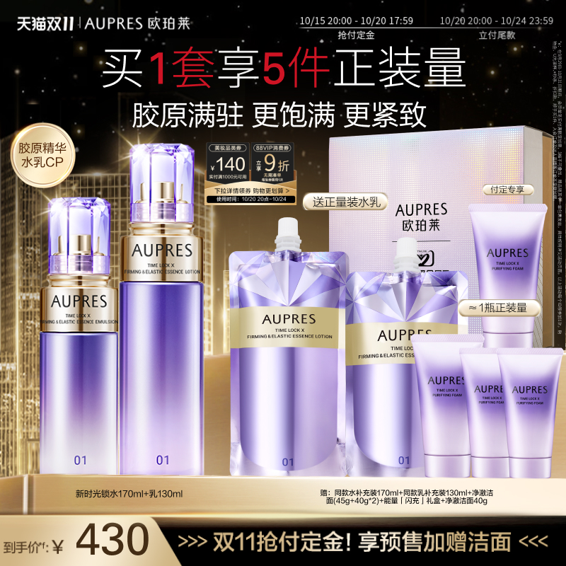 【抢双11付定加赠】欧珀莱时光锁紧致弹润精华水乳套装补水抗皱紧