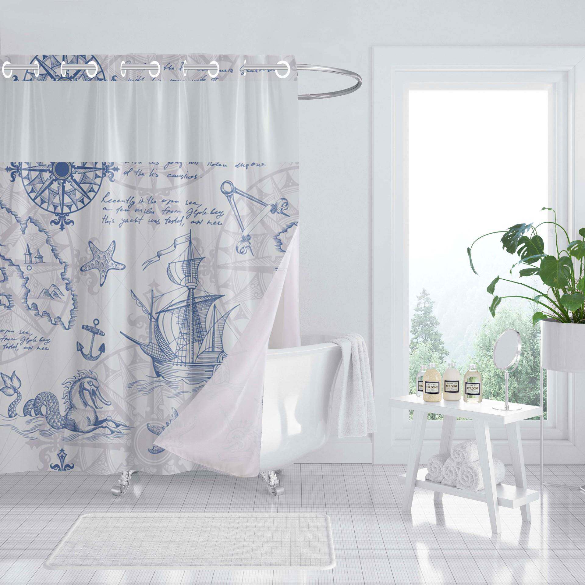 24浴帘口双层印花浴帘干湿分离开大扣隔断l涤帘防KKZ水防霉年浴室