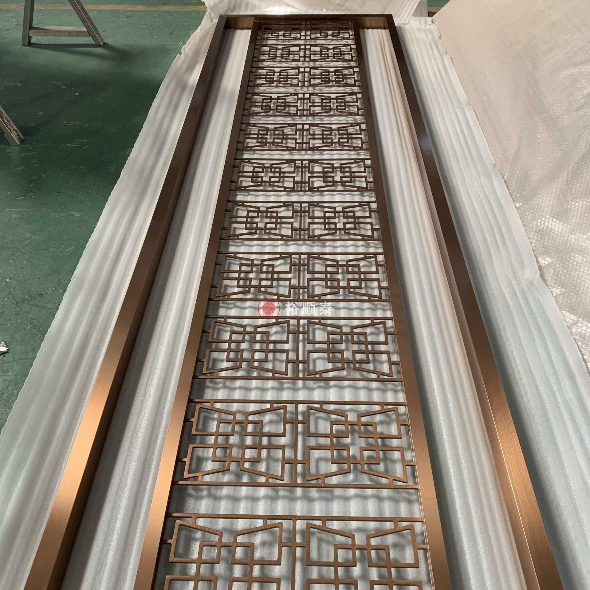 售楼处酒店工装新中式金属花格隔断制品厂家装饰不锈钢玄关屏风