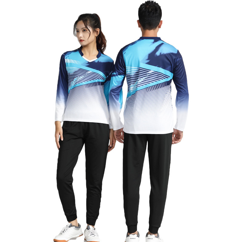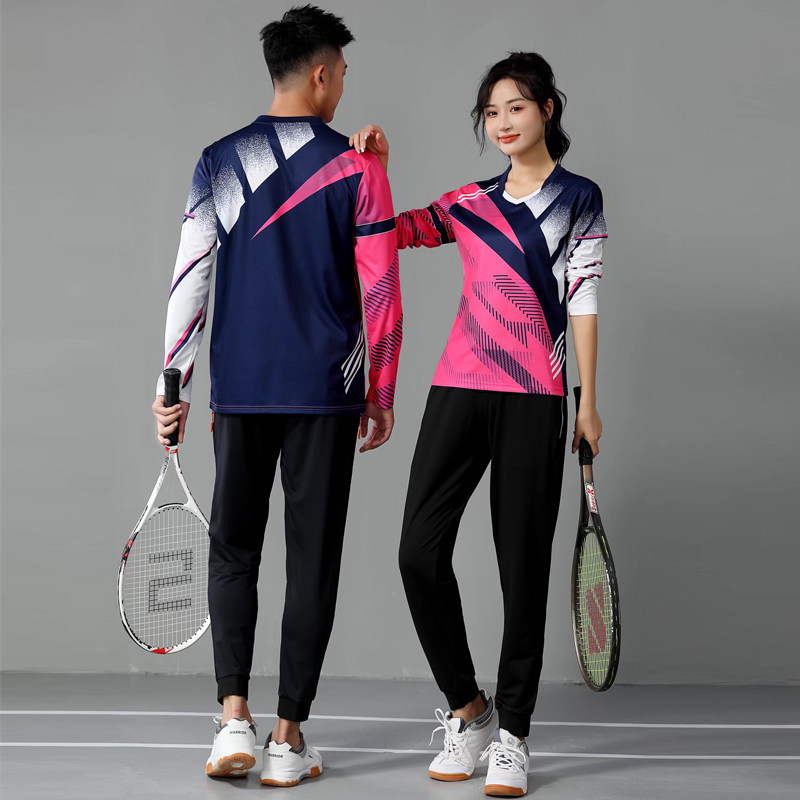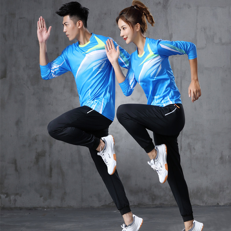团购秋冬长袖羽毛球服套装速干男女气排球服长裤乒乓球服定制印字
