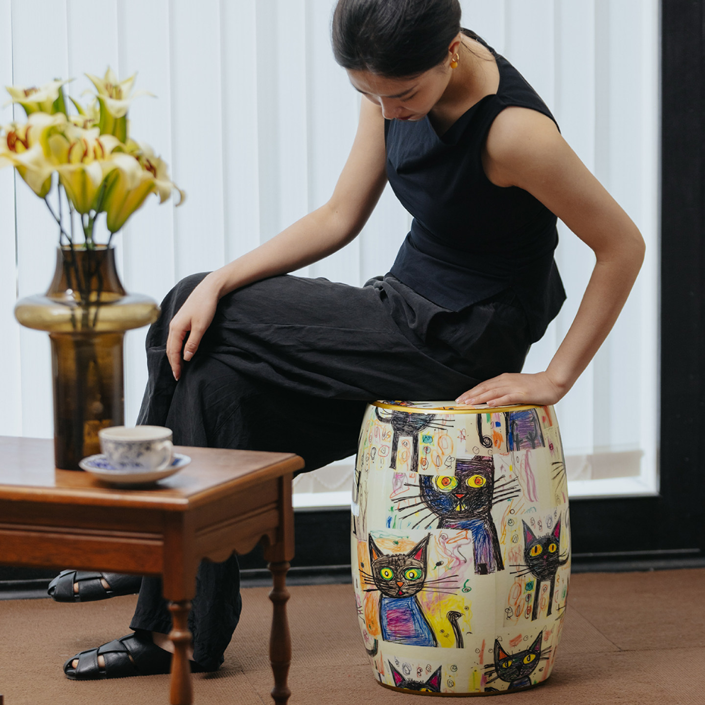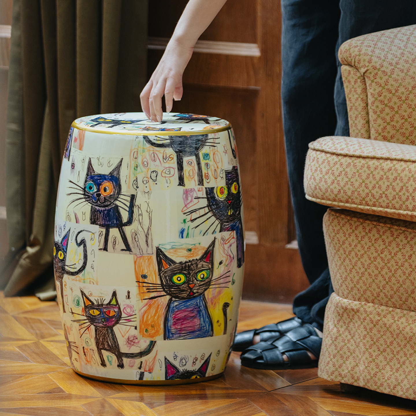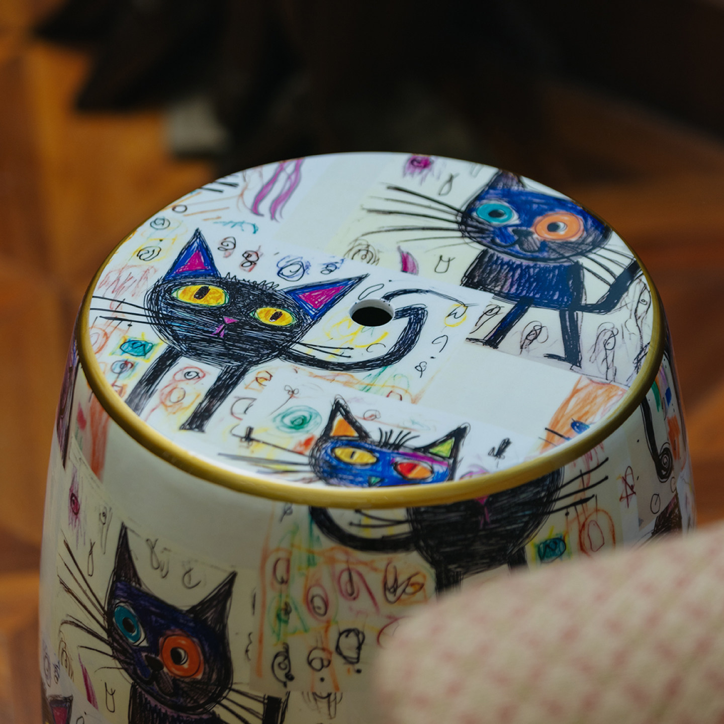 家庭罗曼史 薛定谔的猫鼓凳彩绘陶瓷坐墩法式中古风客厅边几卧室