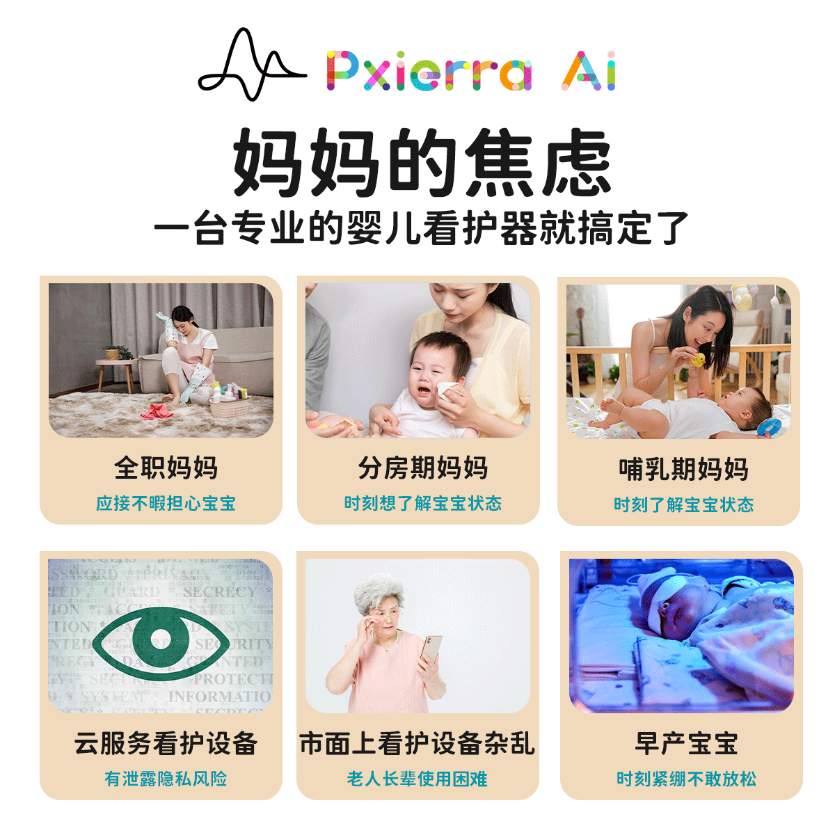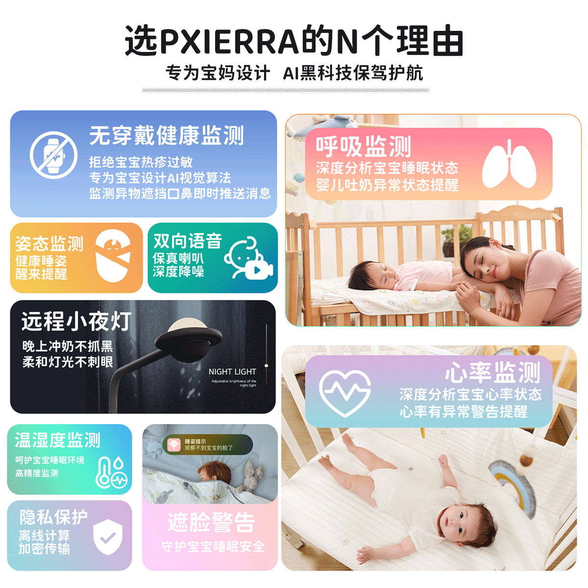 PXIERRA昕心 智能AI婴儿摄像头无接触体征监测监控器孩子母婴看护
