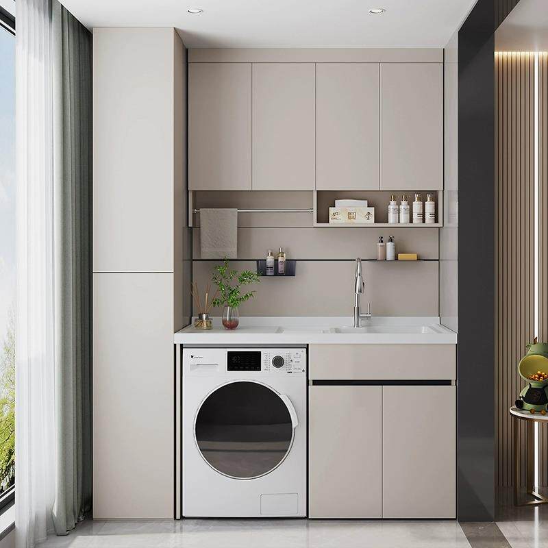 阳台蜂窝铝滚筒洗衣机叠放一体柜石英石台盆带搓板组合储物柜工厂