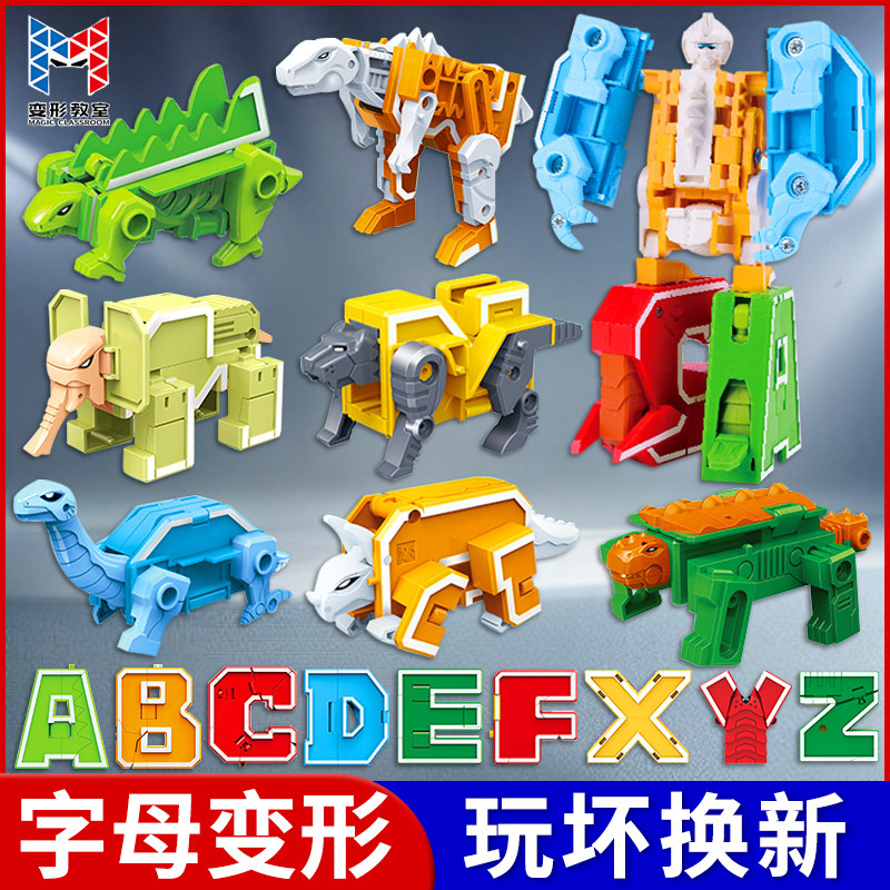 字母变形玩具儿童益智拼装数字机器人合体百变金刚恐龙机甲男孩26