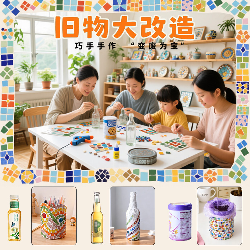 推荐理由:马赛克贴片手工制作diy材料包幻彩水晶创意粘贴艺术彩颗粒玻璃片