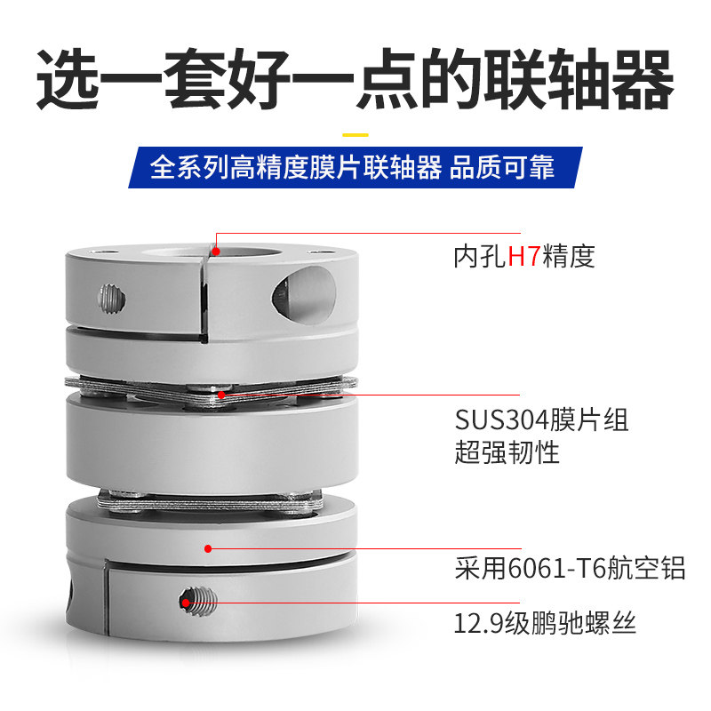 推荐理由:膜片联轴器铝合金单双膜片传动轴连接器伺服电机丝杆连轴器大扭矩