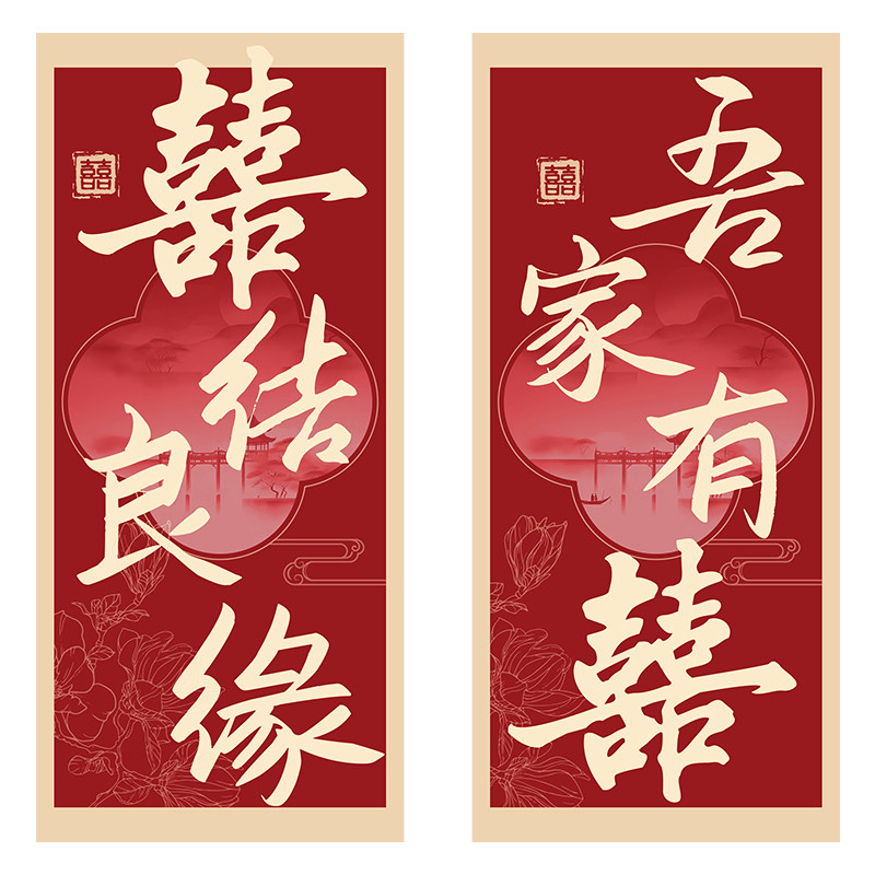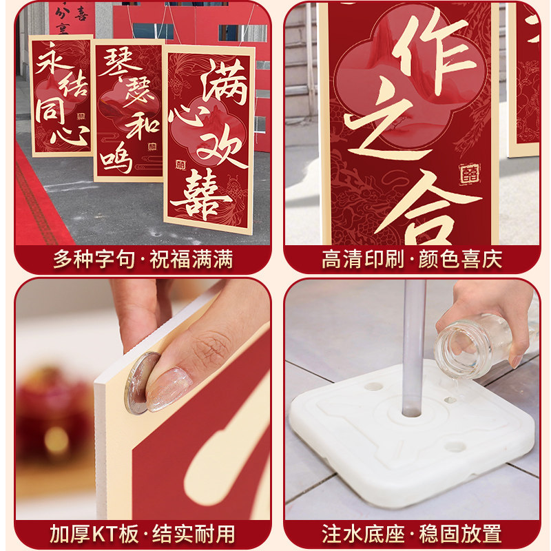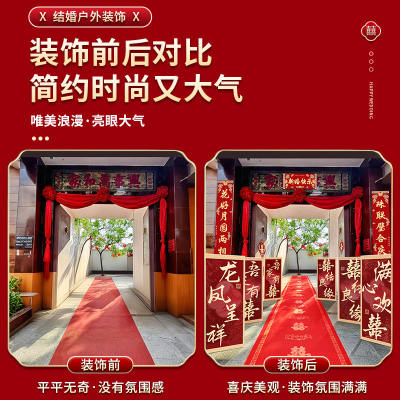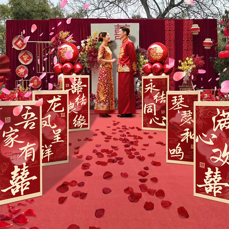 结婚农村院子婚庆路引订婚宴场景婚礼庭院布置户外路引牌指示拱门